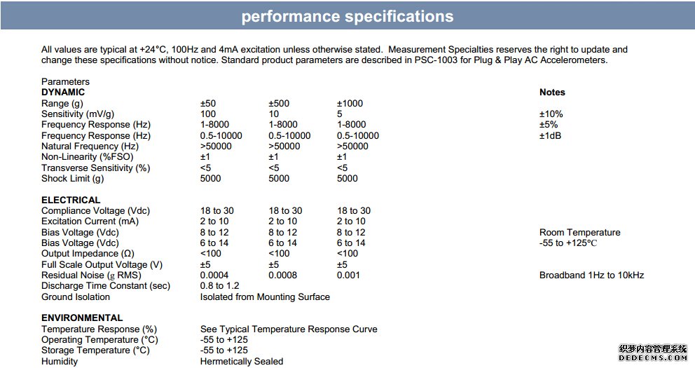 美國MEAS 7101A系列加速度計性能規格圖:dQQ廣州南創電子科技有限公司