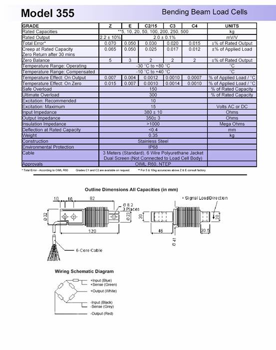 美國特迪亞tedea 355-200kg稱重傳感器產品特性描述: