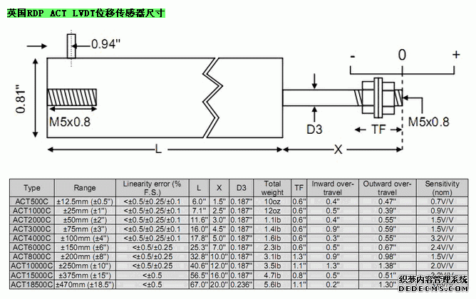 英國(guó)RDP ACT LVDT位移傳感器技術(shù)參數(shù)圖:1Ez廣州南創(chuàng)電子科技有限公司