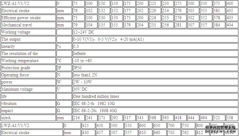 德國VOLFA LWZ-650-A1直線位移傳感器參數圖:v7L廣州南創電子科技有限公司