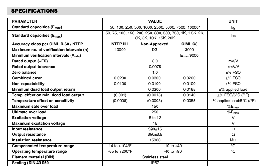 美國vishay Revere稱重傳感器9363-500kg產品技術參數:X05廣州南創電子科技有限公司