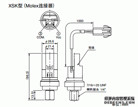 日本鷺宮XSK-AC10I-232壓力傳感器產品尺寸參考圖:hhs廣州南創電子科技有限公司