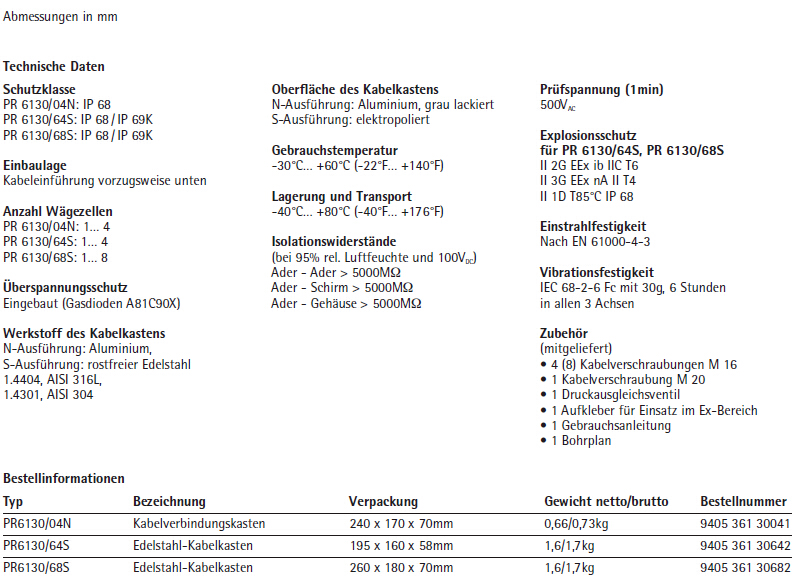 PR6130/08接線盒材料為不銹鋼;堅固的塑料外殼;良好的耐化學性;IP防護等級IP65–69K;PR6130/08接線電纜能完美連接傳感器和稱重傳感器;安裝的電纜能保證長距離無障。iuD廣州南創電子科技有限公司