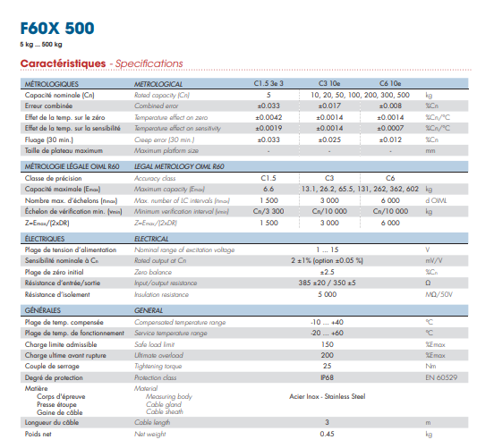法國世感稱重傳感器F60X-50kg信息參數圖: