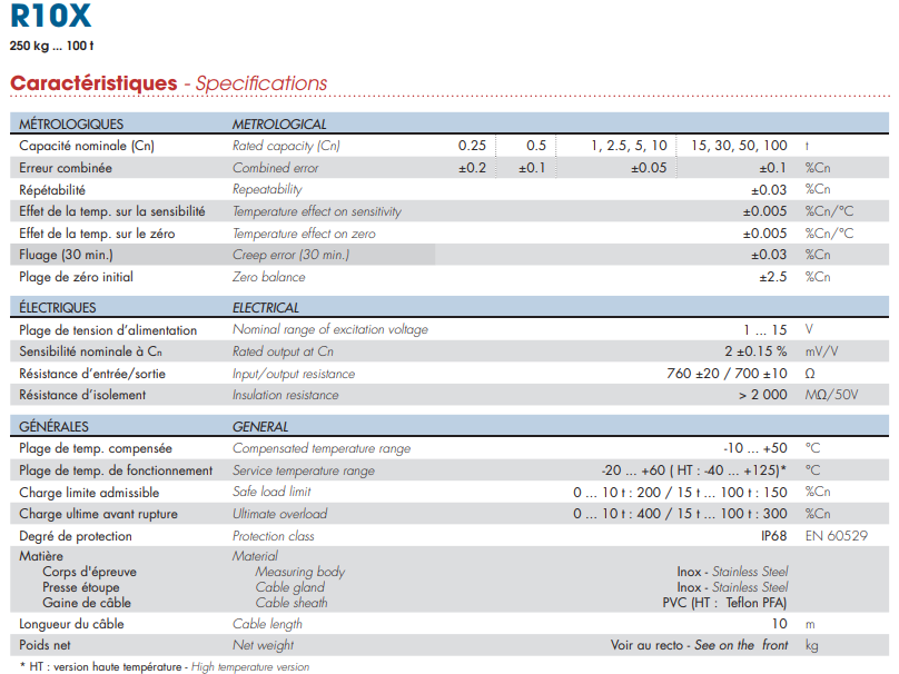 法國SCAIME R10X-250KG稱重傳感器,由不銹鋼制成, 密封焊接至防護等級 IP68j1E廣州南創電子科技有限公司