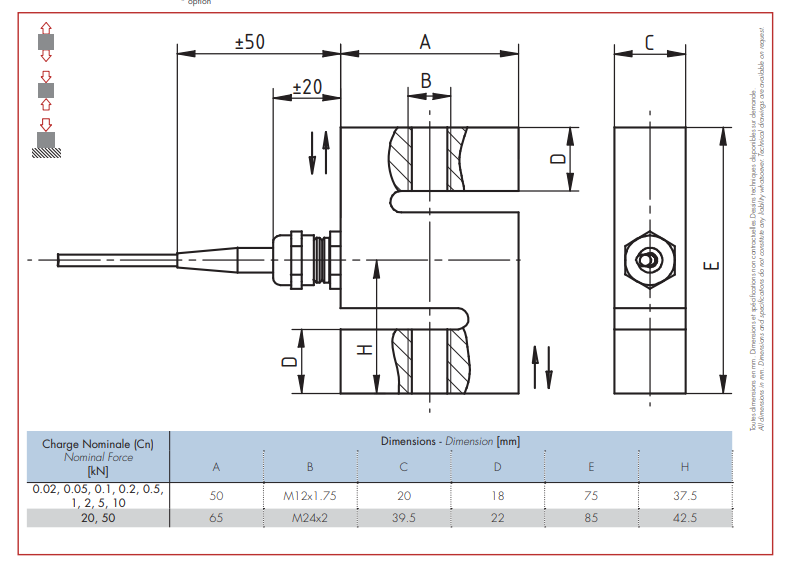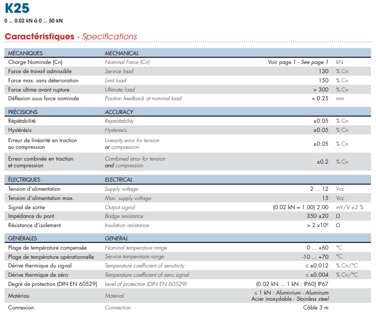 法國世感Scaime力傳感器K25-500N產品參數圖:ktY廣州南創電子科技有限公司