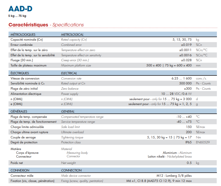 法國Scaime稱重傳感器AAD-D-5KG產品特性: