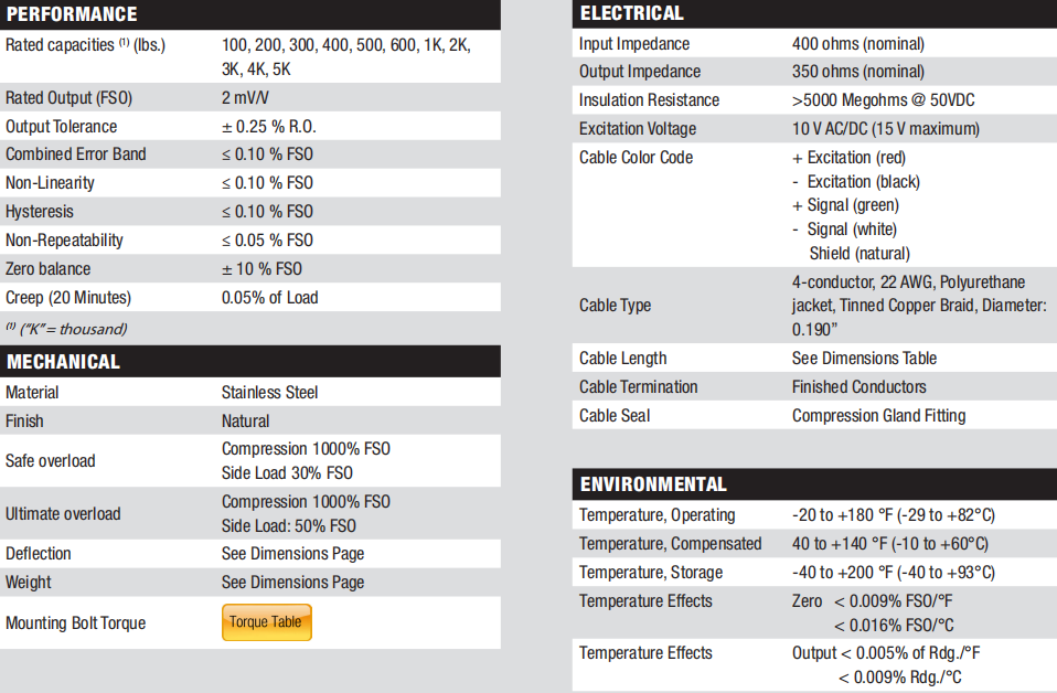 UfE廣州南創電子科技有限公司輪輻式/柱式 大量程稱重傳感器: PB1 :20K, 30K, 50K, 75K, 100K 150K, 200K, 300K, 400K, 500K ; PD :5k, 10k, 25k, 50k, 100k ; PF3 :100, 250, 500, 1K, 2K, 3K, 4K, 5K ; PG : 1K, 2K, 3K, 4K, 5K, 7.5K, 10K, 20K, 30K, 50K, 75K, 100K, 150K, 200K, 300K, 400K ,500K