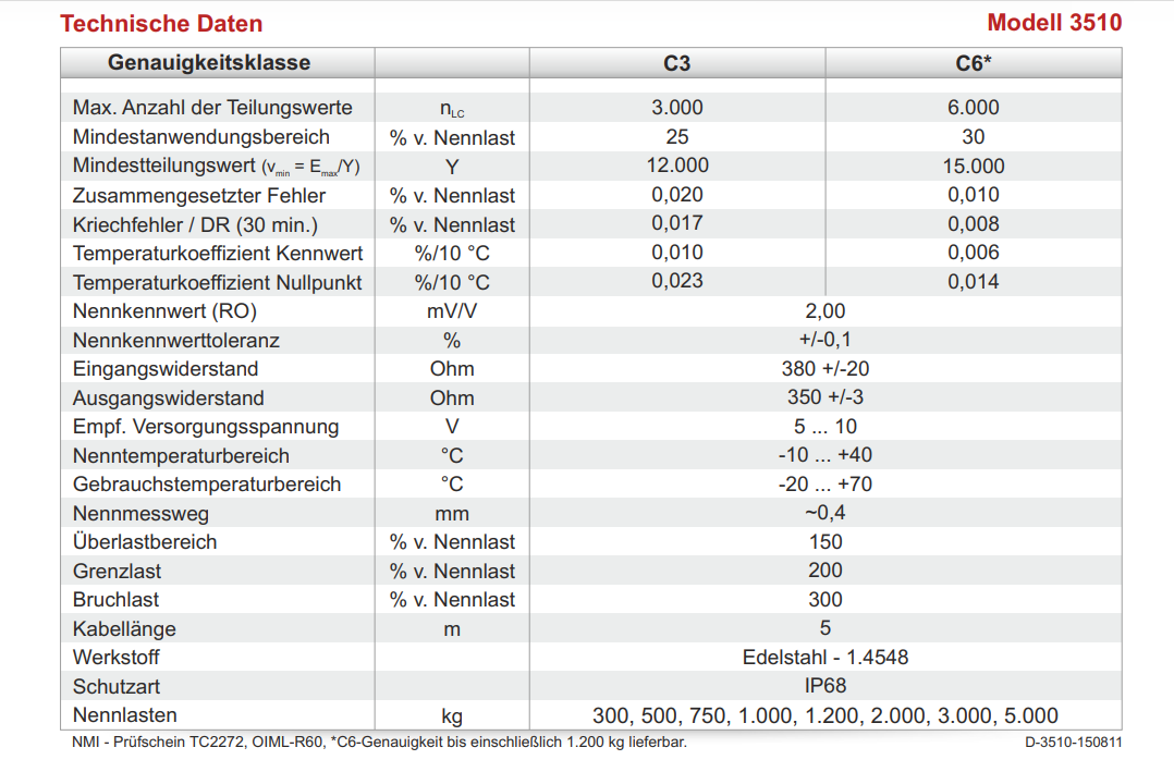 xVb廣州南創電子科技有限公司德國SOEMER 3510系列稱重傳感器技術參數: