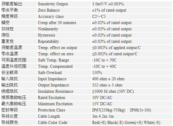 注:1、產品250kg、300kg靈敏度輸出:2.0mV/V ±0.003%;2、SQB-500KG稱重傳感器可選不銹鋼產品;iJO廣州南創電子科技有限公司