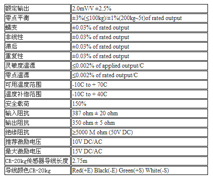 美國Transcell CR-20kg稱重傳感器產品所有量程如下:Ohl廣州南創電子科技有限公司