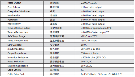 美國Transcell稱重傳感器SBT-5T產品參數:QZx廣州南創電子科技有限公司