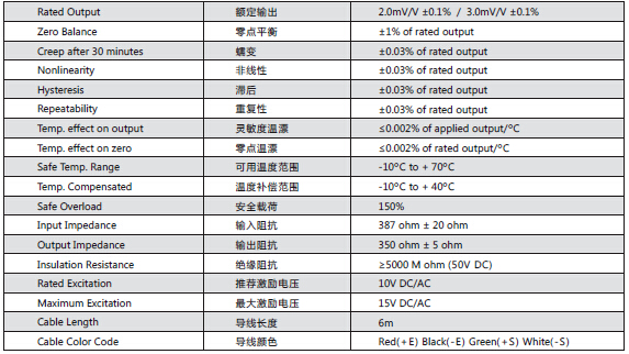 美國傳力Transcell BSA系列稱重傳感器所有量程如下:D78廣州南創電子科技有限公司