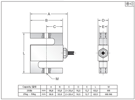 美國Transcell稱重傳感器BSA-25kg產品參數:D78廣州南創電子科技有限公司