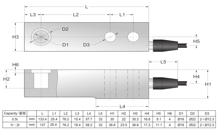 美國傳力SBTL-500kg稱重傳感器產品技術參數: