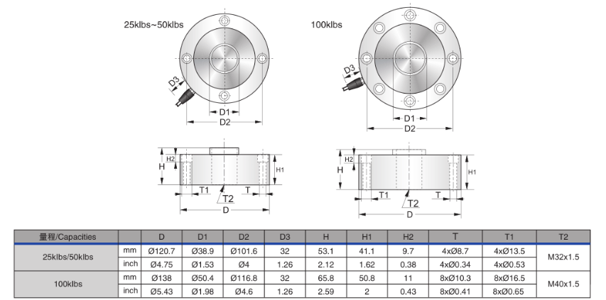 PTCT-(25klb-100klb)稱重傳感器 美國傳力Transcell