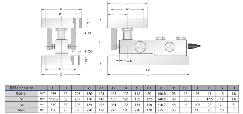 量程:250lb,250kg,500kg,1t,1.5t,2t,2.5t,5tMXI廣州南創電子科技有限公司