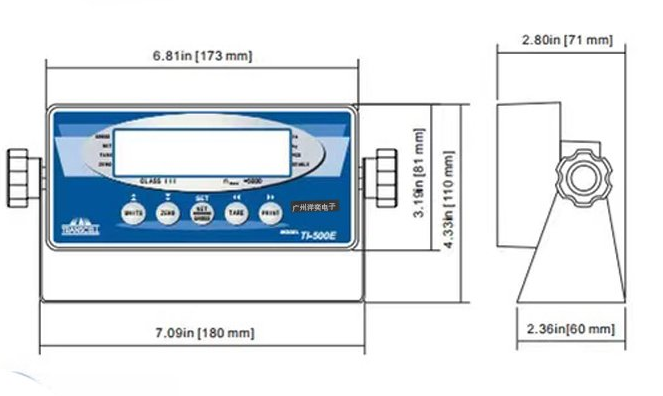 美國傳力TranscelTI-500E稱重顯示儀表尺寸圖:Qnr廣州南創電子科技有限公司