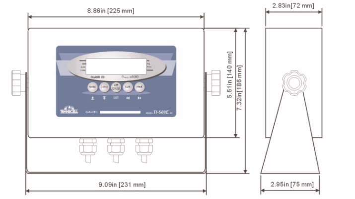 美國傳力TranscelTI-500ESS稱重顯示儀表尺寸圖:JB3廣州南創(chuàng)電子科技有限公司