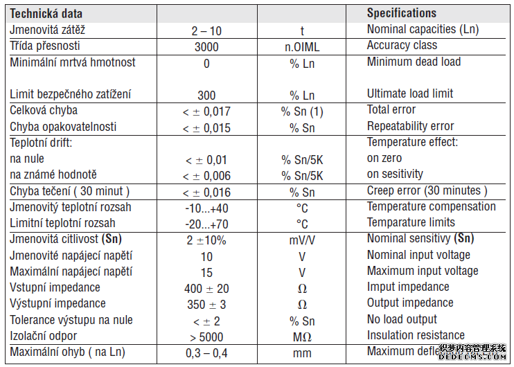 最大偏差(at Ln):尤梯爾 MOD540稱重傳感器 0Yx廣州南創電子科技有限公司