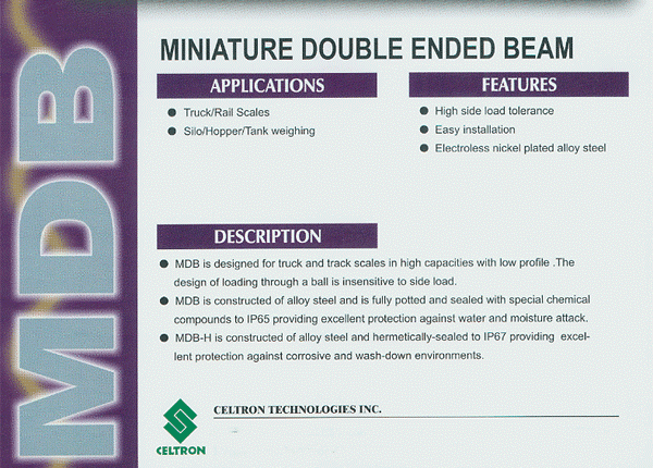 Celtron MDB雙剪切梁式稱重傳感器專為卡車和鐵路的低配置高容量規模設計。在裝載過程中不易受負載影響。VM4廣州南創電子科技有限公司