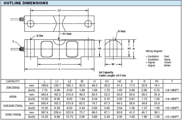 Celtron CLB-20klb稱(chēng)重傳感器是剪切梁稱(chēng)重傳感器,可自由水水平移動(dòng),負(fù)載不易受影響,可選FM相關(guān)認(rèn)證,材質(zhì)采用模具鋼材為化學(xué)鍍鎳合金,NTEP Class lllL 10000認(rèn)證,并用特殊化合物充分壓縮,有良好的防水防濕功能,雙端安裝模式很好的防止了箱灌移動(dòng),保護(hù)等級(jí)為IP67。Celtron CLB-20klb稱(chēng)重傳感器應(yīng)用于:車(chē)輛/鐵路稱(chēng)重用,筒倉(cāng)、漏斗、箱灌等稱(chēng)重用,叉車(chē)秤。