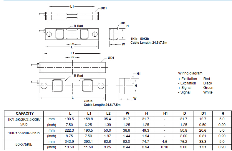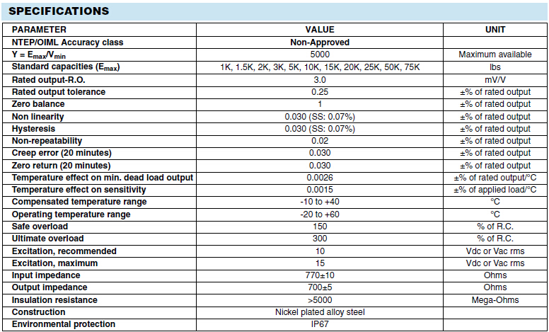 美國世銓Celtron DSR系列稱重傳感器所有量程如下: shQ廣州南創電子科技有限公司