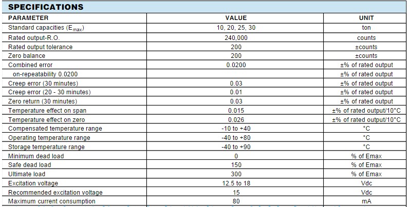 美國Celtron MDBD-10T稱重傳感器系列稱重傳感器所有量程如下:lNF廣州南創電子科技有限公司