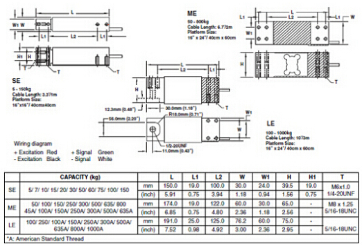 美國世銓Celtron LOC系列稱重傳感器所有量程如下:K1U廣州南創電子科技有限公司