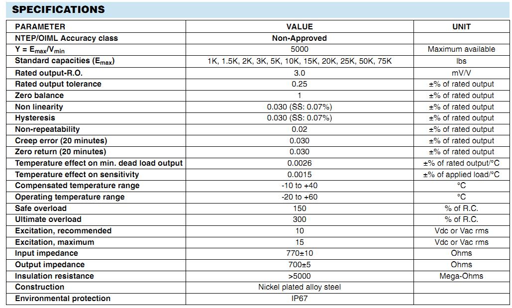 美國vishay Celtron稱重傳感器所有量程如下: 3gT廣州南創電子科技有限公司