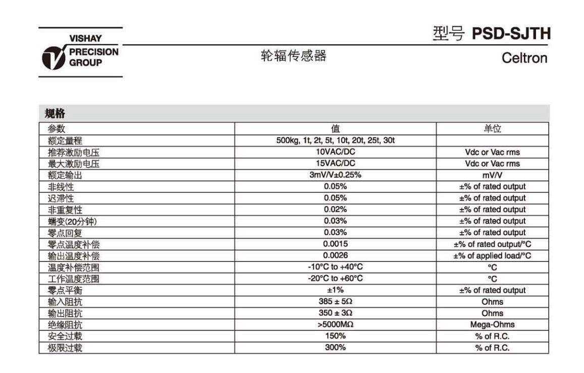 美國vishay celtron PSD-1tSJTH傳感器更多產品詳細資料請點擊:celtron稱重傳感器,進入頁面可查找vishay celtron傳感器型號、vishay celtron稱重傳感器技術參數選型資料,以及威世世銓傳感器具體安裝技術指導信息。bcX廣州南創電子科技有限公司
