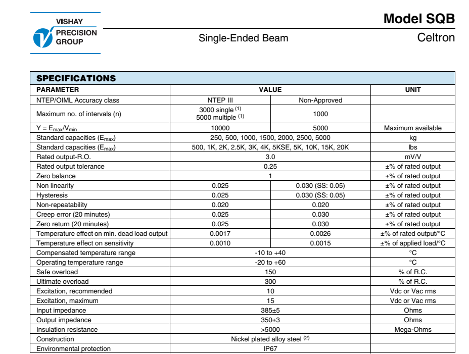vishay celtron SQB-1tSS稱重傳感器型號類別技術(shù)參數(shù)選型安裝等資料信息,如果有關(guān)