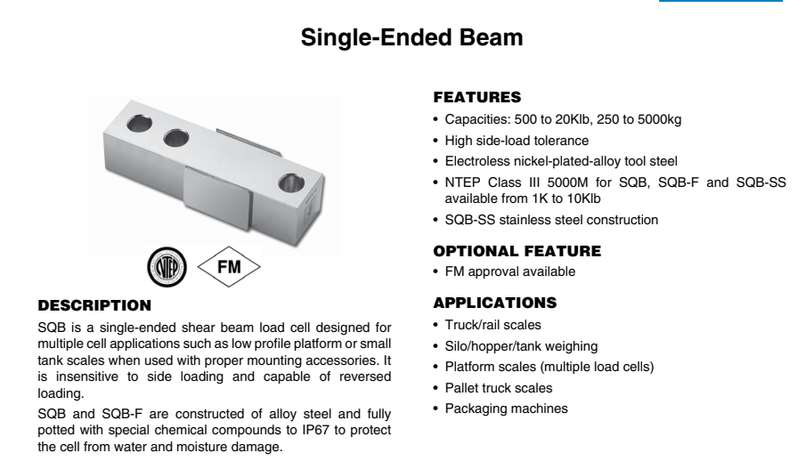 bHi廣州南創(chuàng)電子科技有限公司產(chǎn)品系列:SQB稱重傳感器