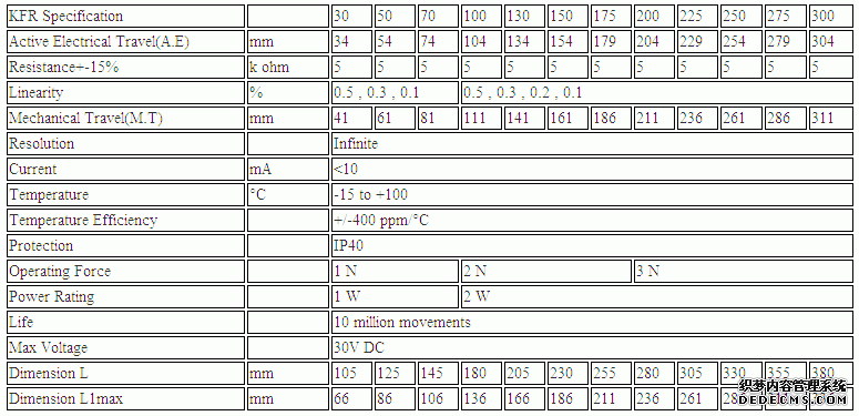 德國VOLFA KFR-175-A1位置傳感器參數圖:eFi廣州南創電子科技有限公司