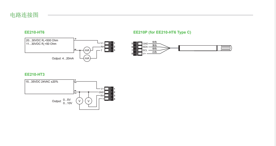 奧地利E+E ee210溫濕度顯示器電路連接圖:Ybo廣州南創電子科技有限公司