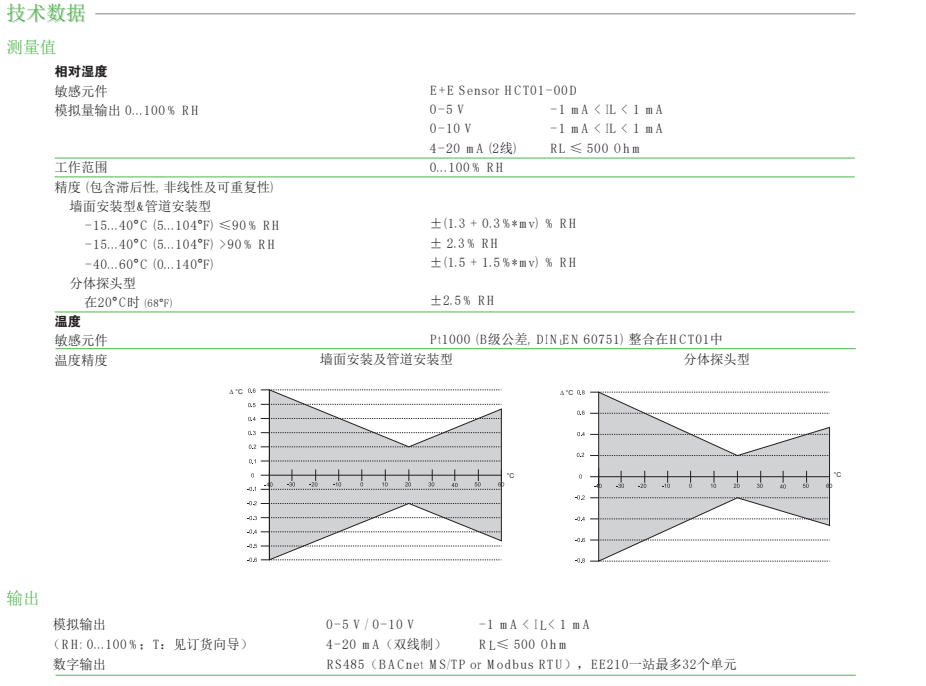奧地利E+E ee210溫濕度變送器技術參數圖:Ybo廣州南創電子科技有限公司