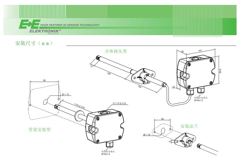 奧地利E+E ee650風速探頭安裝尺寸圖:ycy廣州南創電子科技有限公司