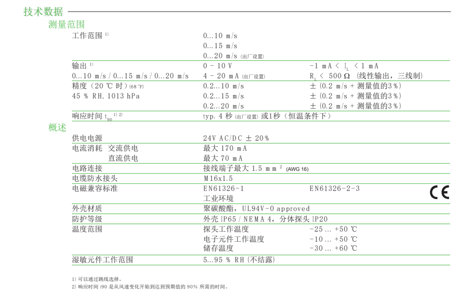 奧地利E+E ee650風速變送器技術參數圖:ycy廣州南創電子科技有限公司