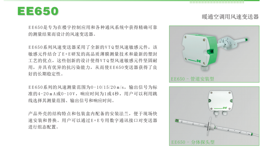 奧地利E+E ee650風速傳感器更多產品詳細資料請點擊:E+E風速傳感器,進入頁面可查找奧地利E+E風速探頭顯示器儀表型號技術參數選型資料,以及E+E ee650風速變送器具體安裝技術指導信息ycy廣州南創電子科技有限公司