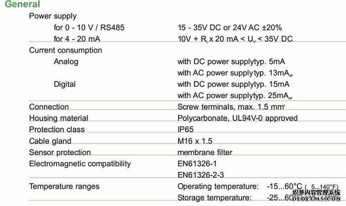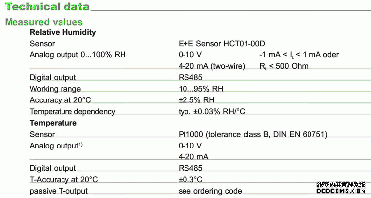 奧地利E+E EE160系列溫濕度變送器技術參數圖:CZ6廣州南創電子科技有限公司