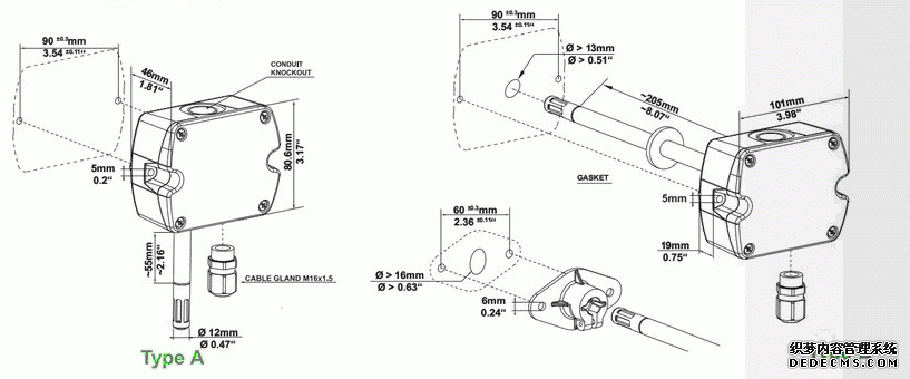 奧地利E+E EE160系列溫濕度變送器產品尺寸圖:CZ6廣州南創電子科技有限公司