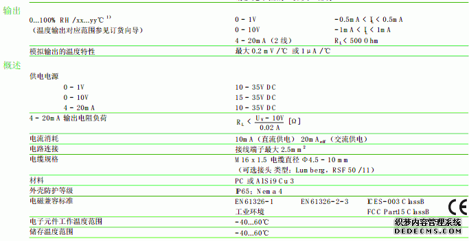 奧地利E+E EE220系列溫濕度變送器技術數據圖:voT廣州南創電子科技有限公司