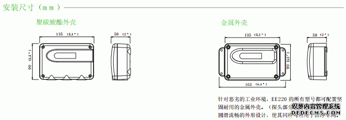 奧地利E+E EE220系列溫濕度變送器產品安裝尺寸圖:voT廣州南創電子科技有限公司