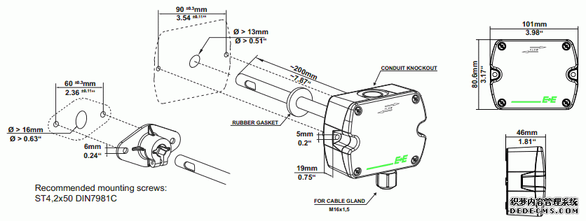 奧地利E+E EE850系列CO2變送器產品尺寸圖:XpY廣州南創電子科技有限公司