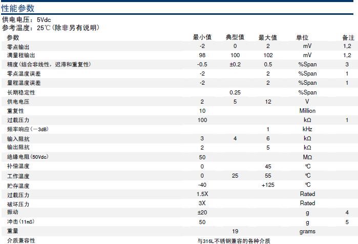 零點溫度誤差-2 02 mV的1,2摧毀98 100102 mV的1,2壓過載壓力-0.5±0.20.5%量程3