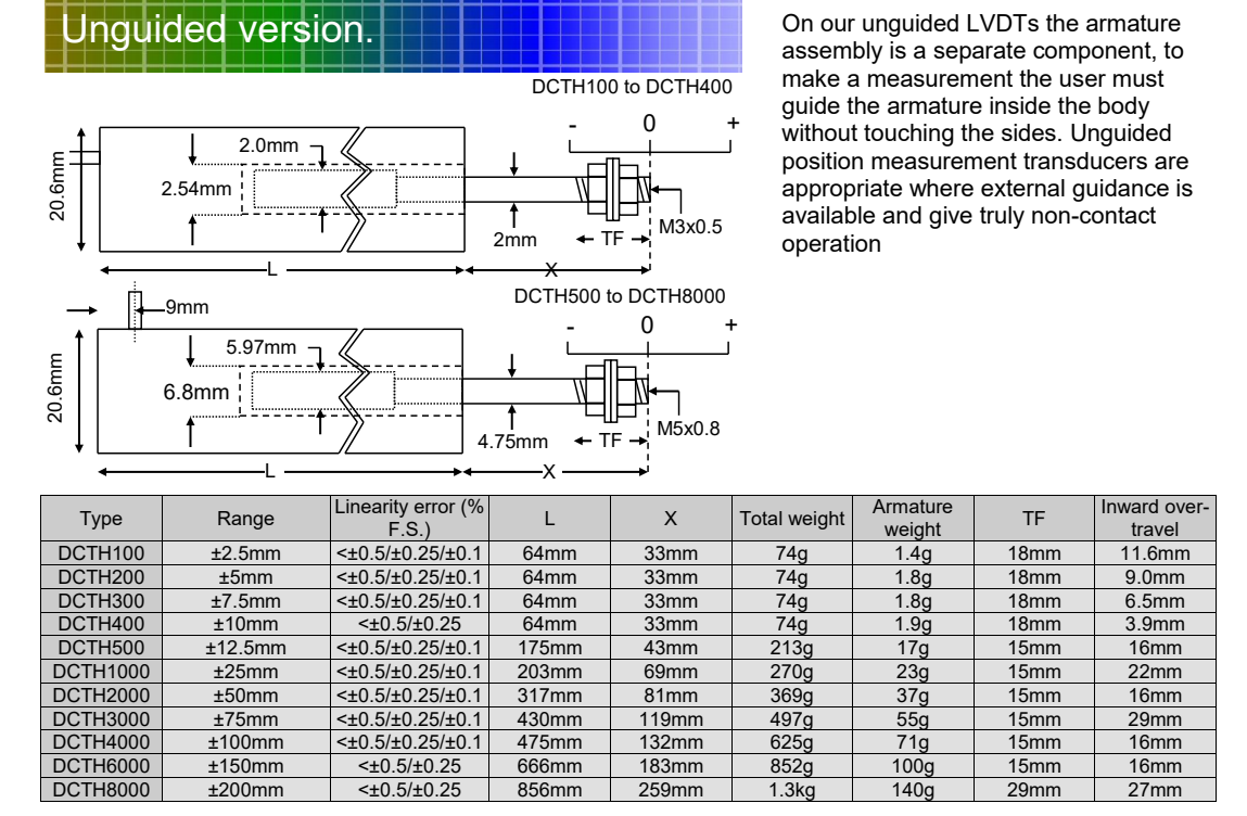 fGZ廣州南創電子科技有限公司fGZ廣州南創電子科技有限公司英國RDP位移傳感器 DCTH系列位移傳感器所有量程如下: